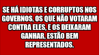 A culpa é vossa porque não é preciso muita gente votar em palhaços para os palhaços ganharem. Basta que a maioria não vote. Também é por vossa culpa que os extremistas estão a ganhar terreno, e pela mesma razão. É fácil pôr os fanáticos a votar. Basta abanar o pano da cor certa e, se mais ninguém vota, eles ficam na maioria. Mas se vocês colaborassem e se dessem ao trabalho de avaliar as propostas dos partidos, se os responsabilizassem pelas promessas que fazem e votassem de acordo com o que acham ser a melhor solução, deixava de haver palhaços, interesseiros e imbecis na política.